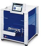 POWATEC wafer mounter Model P-200 allows bonding of films on wafer / substrate and frame in a single pass. The wafer is held by vacuum during the mounting process to an antistatic frits (carbon).